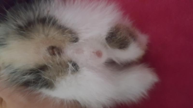 d'environ 8 semaines, car il a été retrouvé avec ses frères et soeurs sans sa maman chez une vieille dame qui ne savait pas les garder.