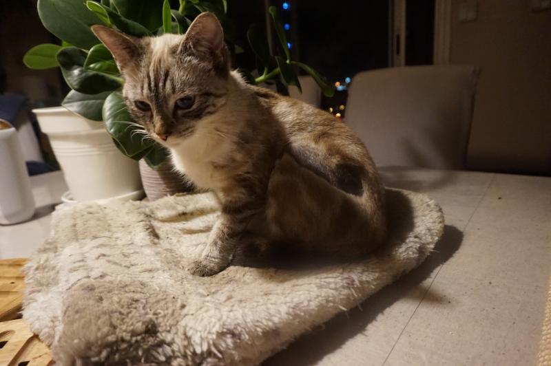 Je m'inquiète beaucoup mais elle est très maligne ! je l'ai vue boire à la fontaine hier et ce matin elle a mangé dans la gamelle de Gecko tranquillement alors que je lui avait préparé une gamelle plus étroite. Elle a passé la nuit sur mon lit (étirée en largeur