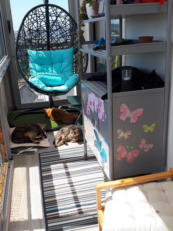 Le beau temps est de retour ::): Tout la famille chat au complet sous les rayons du soleil !