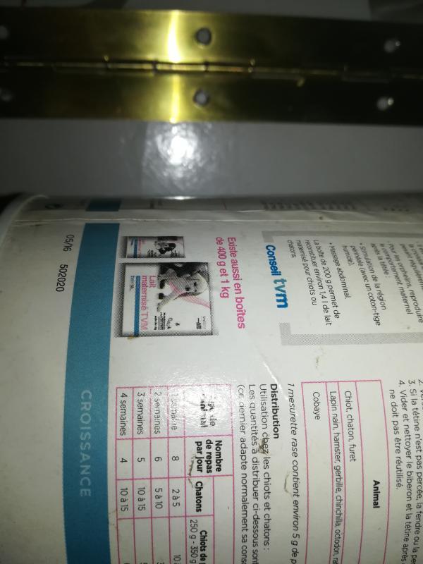 yacapu a écrit:Donc si passe 500g vous pouvez vermifuger sans soucis, comprimé milbemax qui traite tout les vers. Pour le lait c'est écris normalement au dos de la boîte moi j'utilise le tvm y a ce tableau au verso