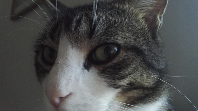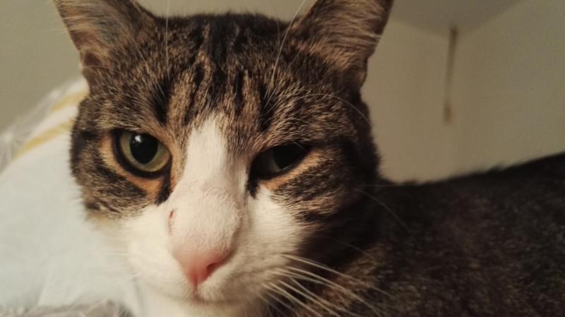 En revanche, il a la pupille noire depuis ce matin et ça a l'air de le gêner.