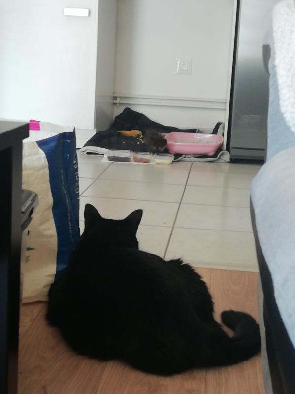 Mais j'avais l'impression qu'elle tapait fort... Le petit ne miaulait pas mais il avait les oreilles baissées et bougeait pas. J'ai juste sur le coup arrêté le truc j'allais faire une crise...