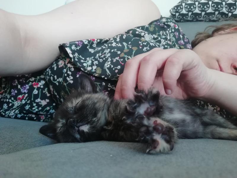 Elle a toujours des caresses. Elle et moi nous sommes liées depuis qu'elle est bébé. Je l'ai élevée comme un enfant humain. Quand je p'eure elle vient vers moi me fait plein de bisous et s'allonge sur moi. Elle est adorable.