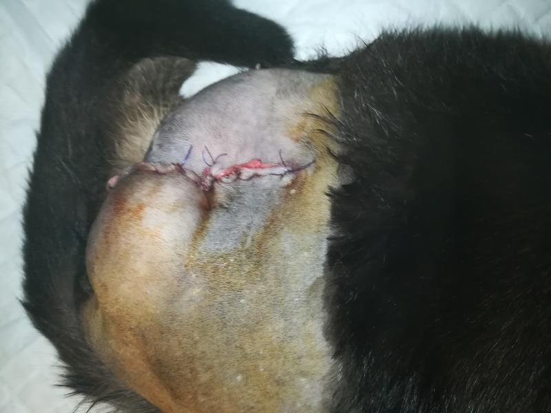 Elle est rentrée aujourd'hui, je dois la gardée en parc jusqu'au retrait des fils