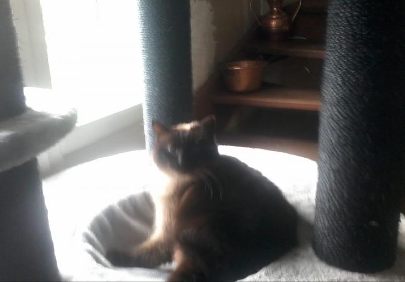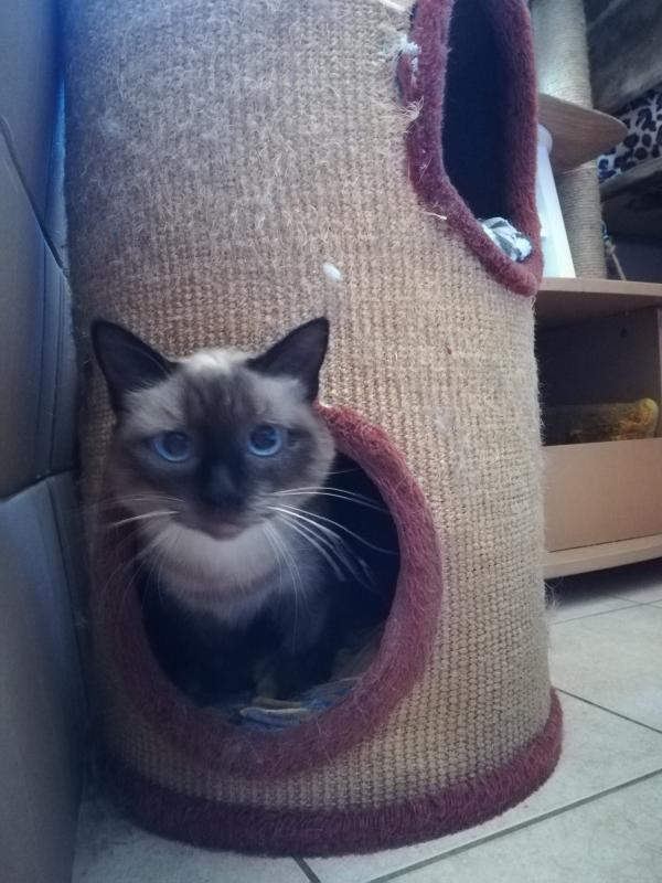 Bonsoir alors mitaine est revenu début août, soi disant là bas elle courser les chats et l'autre siamoise était terrorisé. Enfin bref.... Moi j'ai pas eu le cœur à la remettre au chalet, donc je les mise salle de bain et je les faite venir petit à petit parmis ma tribu. Elle n'agresse personne et elle mène sa petite vie. Par contre beaucoup de difficultés à se déplacer sur carrelage