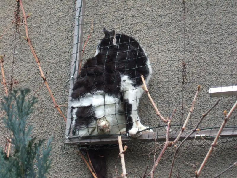 mais ce matin j'ai ouvert la prote de la cuisine qui donne dans l'enclos sans penser que la porte de la salle de bain etait ouverte....il n'a fallu que quelque minutes pour qu'il sorte !!! il a tout de suite compris qu'il pouvait aller dehors !!!! il est malin !!!!