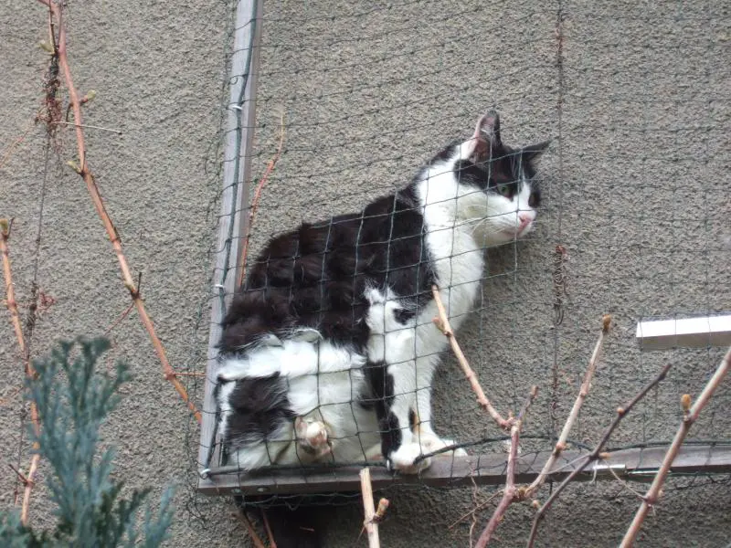 il est dans l'enclos....se frotte partout et fait ses griffes sur le tronc du pommier....j'espère que ça va aller !!!!!