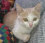 nous avons caramel un chat que l'on a trouvé en septembre, donc il a environ 6-7 mois ! je l'adore cette petite boule de poil