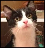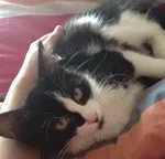 J'ai une petite boule de poils de six mois qui s'appelle Allen et qui vit tous les jours avec moi. C'est un petit garçon (un brin diminué..) noir et blanc avec les yeux jaunes et un tonus de fou. Il peut passer des heures à jouer avec sa petite souris en peluche ou encore avec mes doigts ! Même s'il est encore jeune, il est très doux et ne sort quasiment jamais les griffes, même lorsqu'on le grattouille au ventre (et il adore ça !). La nuit, il est si câlin qu'il dort sur ma tête ! C'est aussi un petit comique qui adore voler les coussins et les objets de l'appartement pour les cacher un peu partout ! On ne s'ennuie pas avec lui.