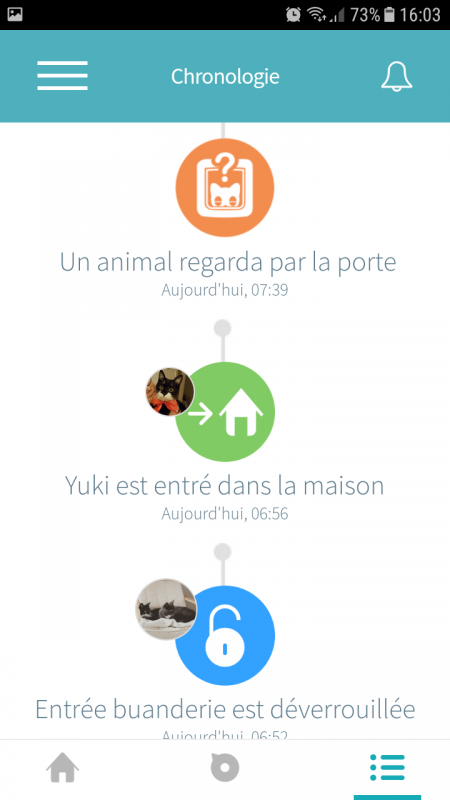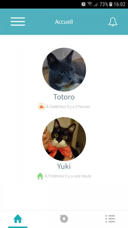- Pour les maîtres stressés, c'est rassurant (être au travail alors qu'un gros orage éclate, et voir sur l'application que le chat est bien au chaud à l'intérieur est rassurant).
