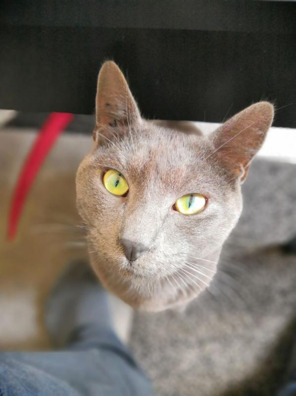 Lui a tenté un contact dans la cuisine avec le même résultat que d'habitude. Il tente de miauler de manière un peu triste mais rien ne marche.