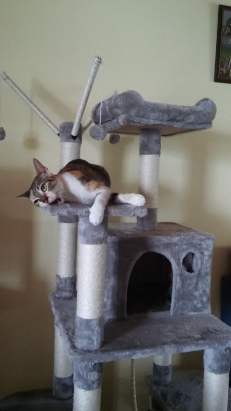 Nous lui avons offert un arbre à chat, au début comme pour la litière elle n'en voyait pas l'intérêt, depuis 2 jours elle semble bien avoir compris!