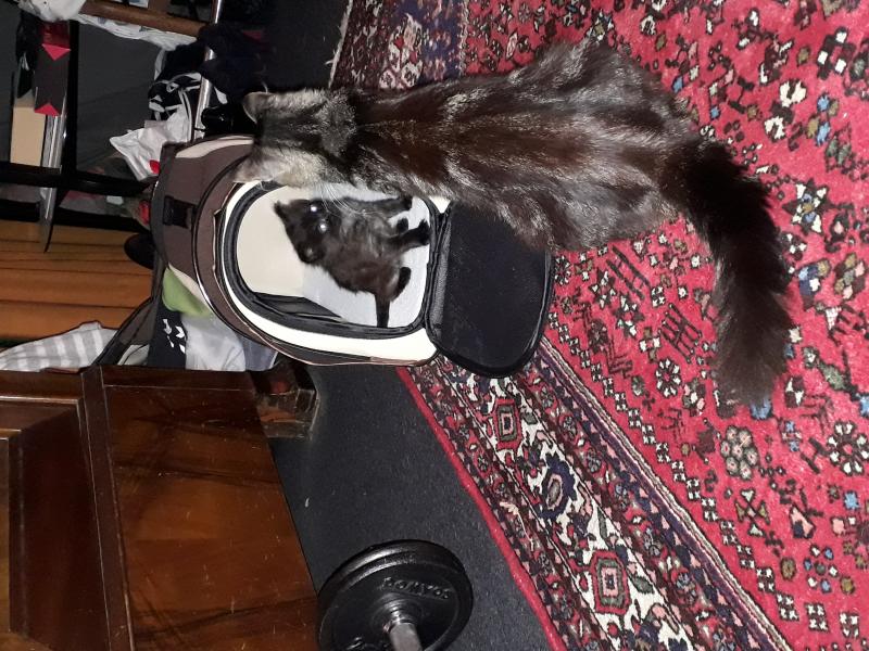 J'enchaine d'ailleurs sur sa 1ere sortie de la maison dans son sac de transport !