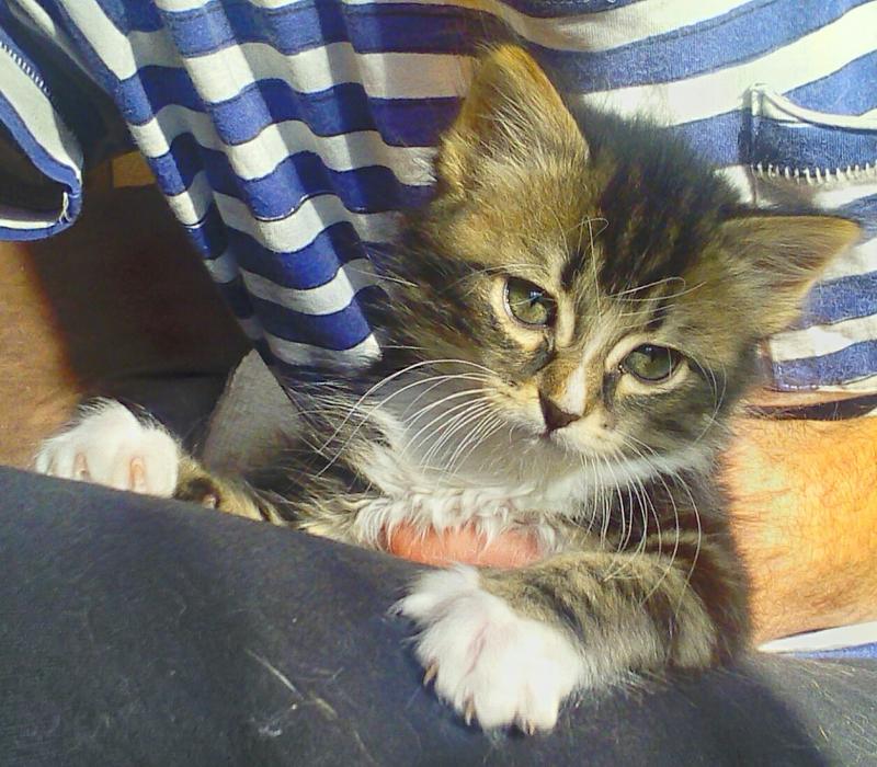 Bonjour à toutes et à tous. Voilà, je vous présente Éros, qui a un peu plus d'un mois. Je l'ai trouvé avec sa sœur dans un cadi le 14 avril. Du coup j'ai estimé leur âge par rapport aux dents. Dimanche dernier, j'ai placé la petite Arya dans une famille qui aime les animaux. Bref. Éros est le troisième de mes chats, et les deux plus grands ont le poil court. Éros a l'air de les avoir mi longs. Or, je ne sais pas si c'est le duvet de bébé ou s'ils seront mi longs. Qu'en pensez vous ? Sera-t-il court ou mi long ? Merci à vous