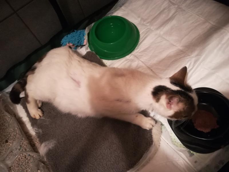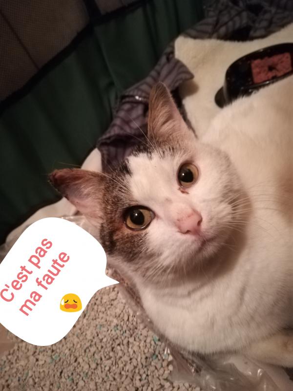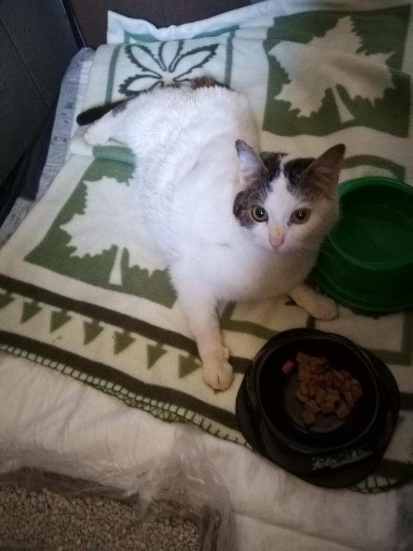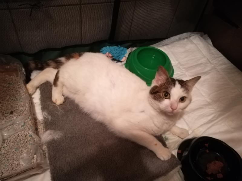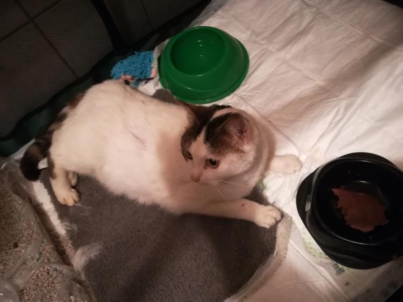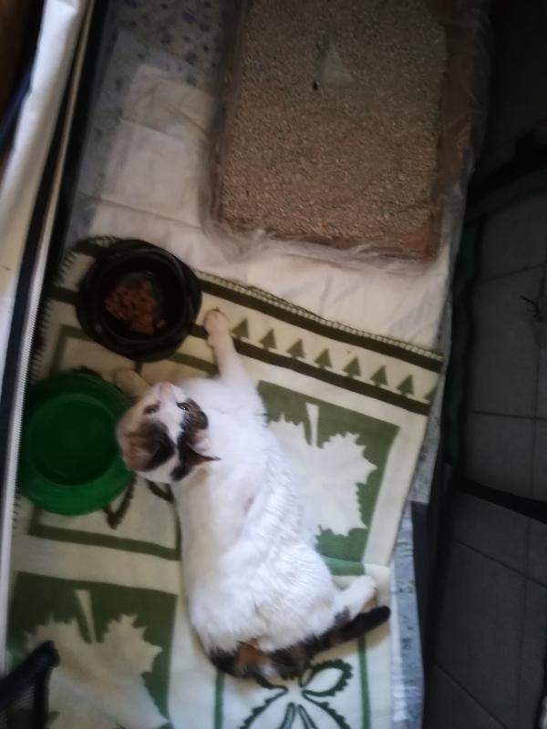 La clinique m'a demandé hier si je pouvais prendre une chatte en cageotherapie,elle a été taper par une auto le 20 février, personne ne l'a réclame. Ce matin, je suis allé la chercher, elle est dans un parc dans ma salle de bain car 15 jours à 3 semaines de convalescence