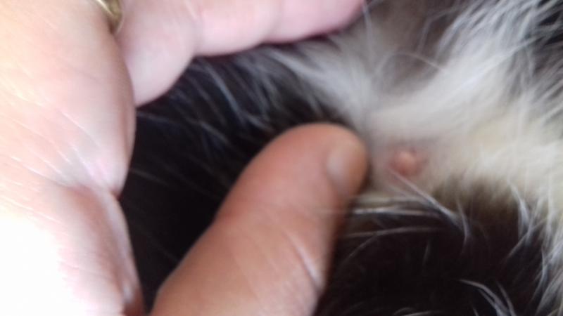 Quand je la mettait sur deux pattes on les distingué bien à travers ses poils sans les écarter maintenant moins . Je me demander si c'était peut être par rapport aux hormones peut être qu'elles étaient plus roses et grosses