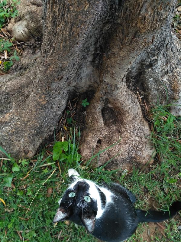 Dans la demi-heure qui a suivi, sa joue avait gonflé, elle a les poils courts donc j'ai cherché un dard sans en trouver (elle s'est toiletté avec force juste après, peut-être l'a-t-elle arraché elle-même ?). Elle a comme un oeuf du côté droit, mais en la surveillant bien on a pu voir que ça ne la gênait pas pour respirer, boire ou manger ( et surtout pas pour aller jouer avec les autres chats).