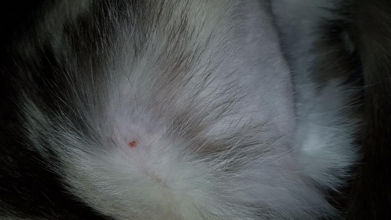 J'avais pensé au léchage dû au stress mais peut être que les puces ont fait leur effet aussi :p