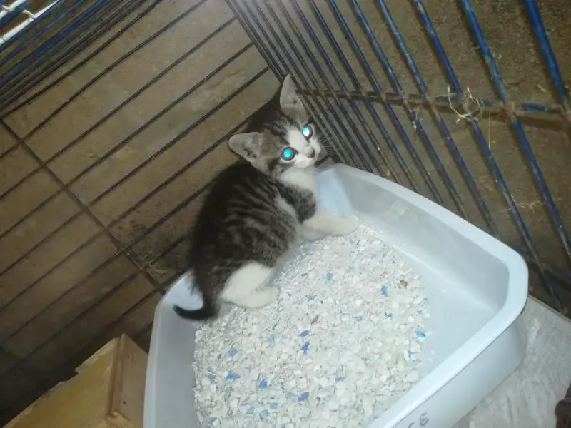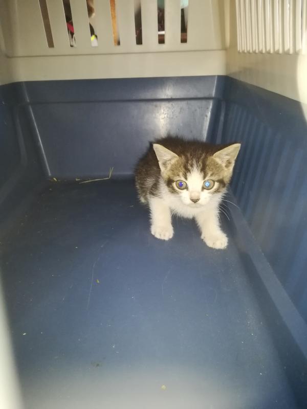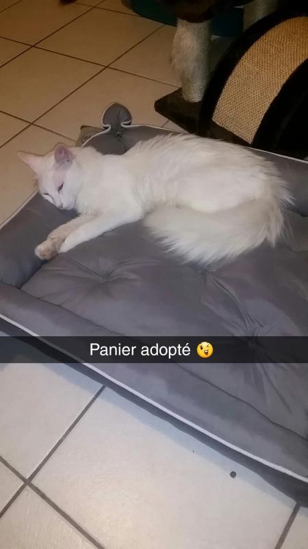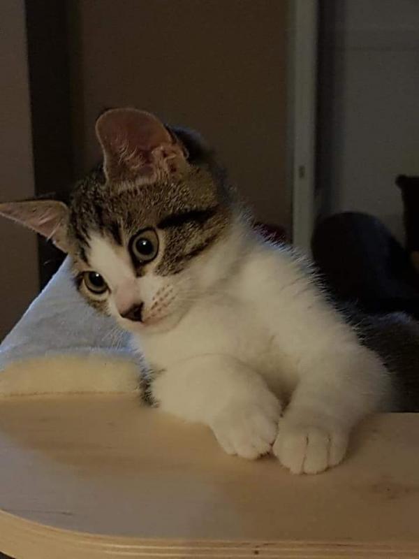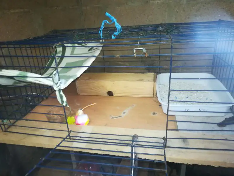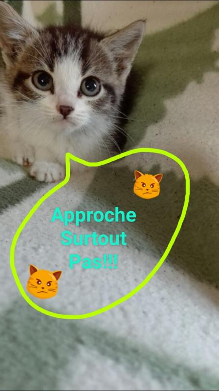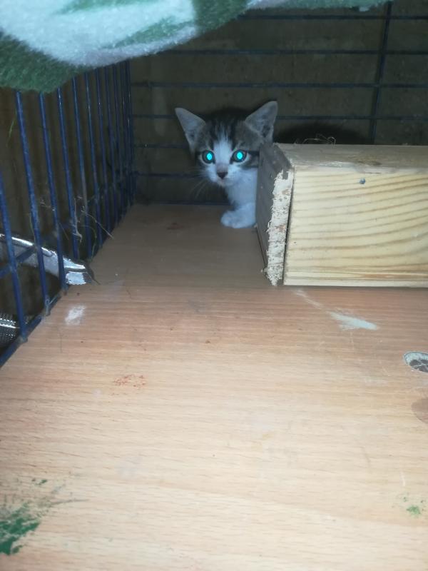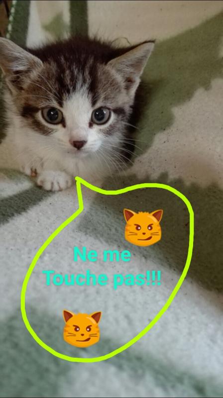 Moi tel sonne une voisine de la rue derrière chez moi qui me dit: y a un chaton dans l'hortensia de mon voisin d'en face qui hurle . Elle me dit: j'ai pensée à vous pour venir le chercher. (Oh ben mince pourquoi pensée à moi ?) lui réponds lol tout le monde pense chaque fois à moi. Et je lui :je vais venir voir. Effectivement, c'est un petit bout d'environ un mois et demi, il hurle de détresse?. J'ai voulu l'attraper, mes il grimper au mur de la maison. Après plusieurs tentatives je les eu. Impossible, pour moi de le laisser là en plus cette rue ça circule pas mal comme c'est la direction pour rejoindre la national. Ayant plusieurs fermes dans le village peut être il vient de là où un abandon. Le petit fait que pleurait, il appel sa maman. ? faute de place, j'ai pris la table de la scie circulaire de mon mari, il aura pas le droit de bricoler pendant quelques temps, j'ai bricoler un caisson pour cacher la scie circulaire et le voilà installer.