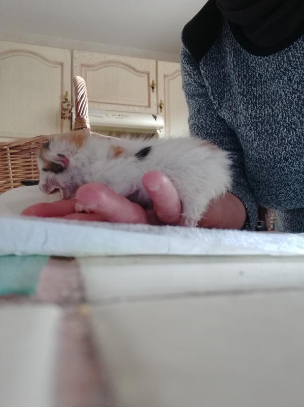 Bonsoir ce matin, sur un groupe Facebook, une personne m'a identifiée sur un sos. Des gens ont trouvé dans leur jardin hier soir un chaton ayant encore son cordon. Ils n'ont pas d'animaux et savent pas vraiment comment faire avec la puce. Ils ont laissé quelques heures envelopper dans une couverture pensant voir la maman et rien. Puis ils ont décidé de la rentrée et l'installer dans un bac, n'ayant rien sous la main, ils lui ont donner du lait bébé de leur fille. Et ce matin, son allée chercher du lait en pharmacie. Ils ont contacté plusieurs associations, mes rien. Je me suis proposée et suis allée la chercher fin de journée. J'espère vraiment qu'elle a eu le colostrum car sinon c'est un biberonnage très risquer ?