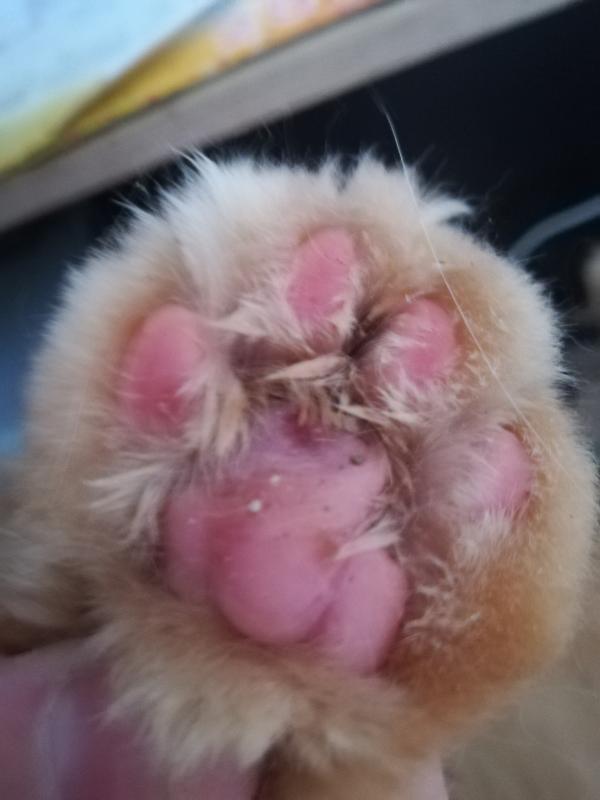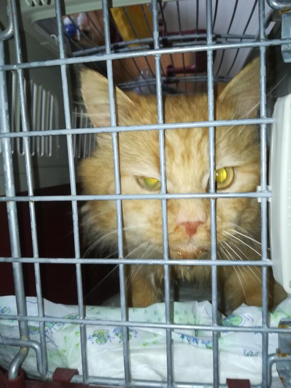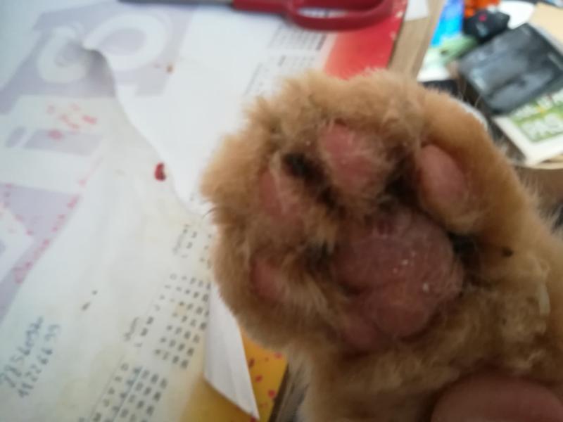 Sos reçu hier pour ce chat coussinet en sang, maigre...au départ d'après la dame c'était une femelle, suis allée véto ce matin c'est un mâle, il est resté pour test fiv felv, castration et son problème coussinets c'est : granulome éosinophilique. C'est une maladie auto-immune dont les origines sont mal connues. Il a gencives rouge et lésions sur la langue mauvaise odeurs également. J'ai tel ce midi test négatif ouf je le récupère ce soir