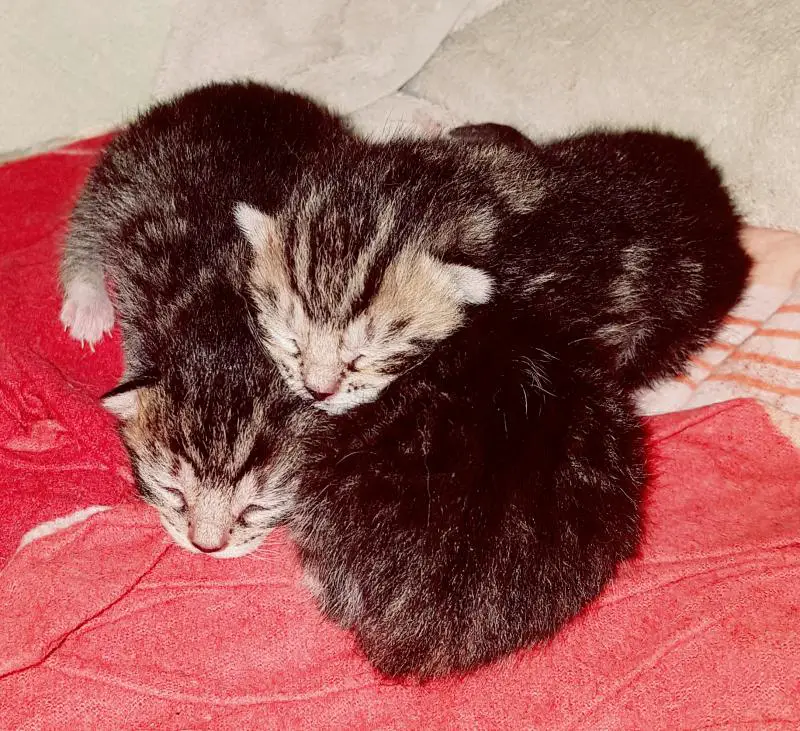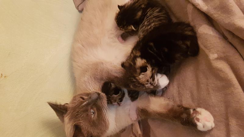 Je confirme, pas d'écaille de tortue dans le lot. Le brown chaud peut parfois donner l'impression du roux à la naissance, mais ça va s'éclaircir![]()